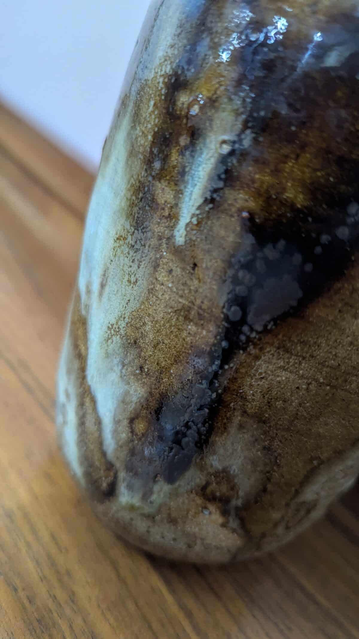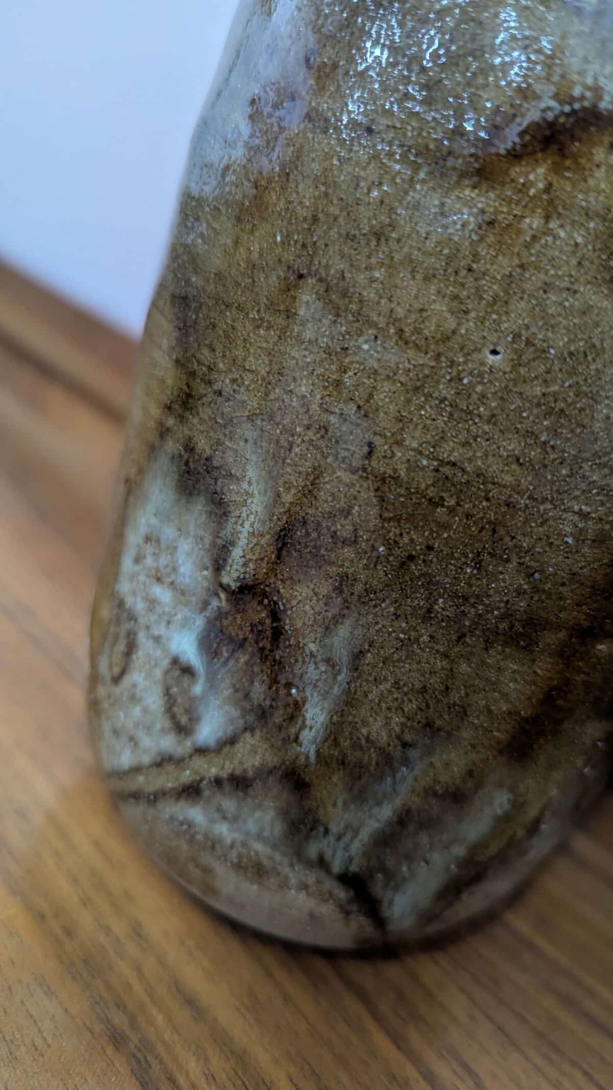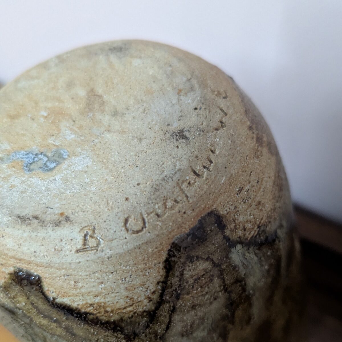 • What’s the story? A super piece of vintage studio pottery, this wide mouth vase is the perfect height for a bunch of blooms. The outside is adorned with a rustic, free-form, drip glaze finish. In fantastic original order and signed on the base - we believe it reads 'B Chaplin-Love'.     Free UK Delivery!