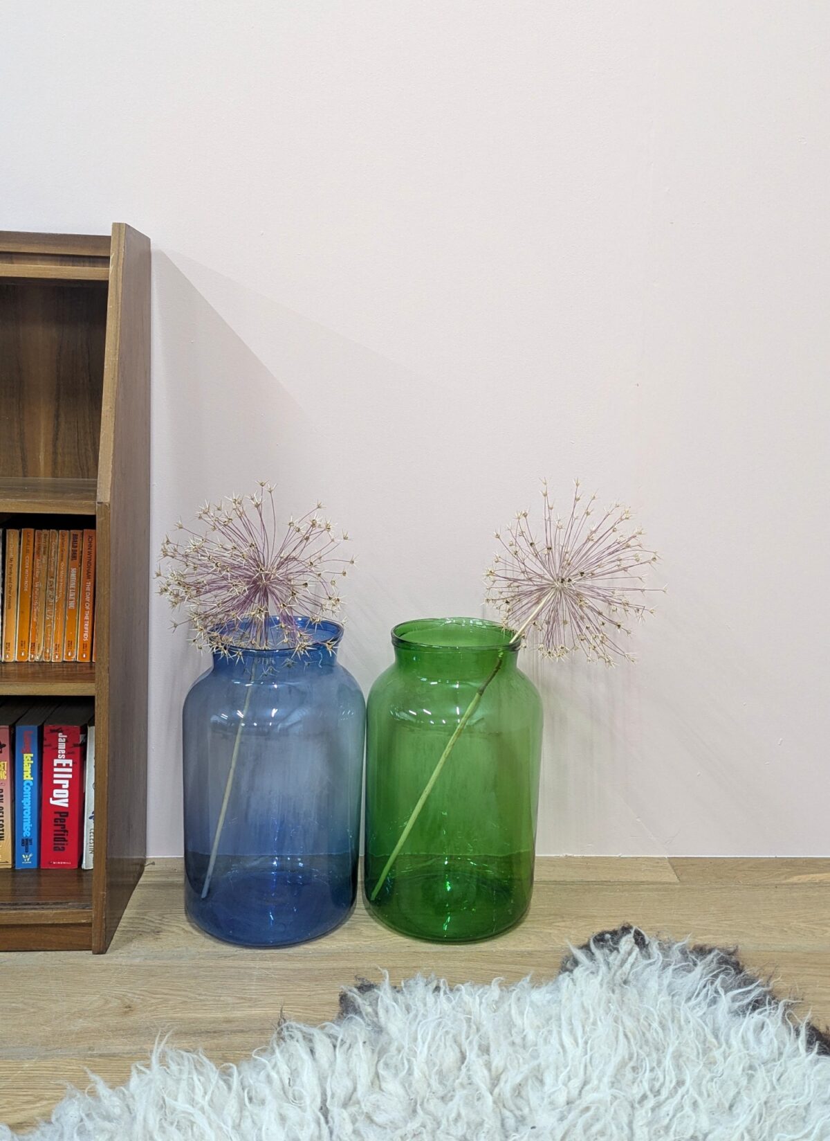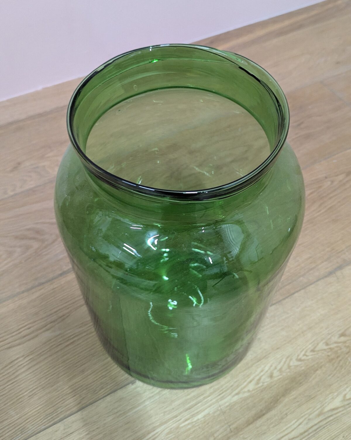 • What’s the story? This large, vintage decorative glass jar works well as a floor-standing piece. An unusual find because of its XL scale, it’s hand-blown as there are wobbles and irregularities across its surfaces. A great accent piece that will add a dose of green vintage charm to a room. Its wide mouth lends itself to long-stemmed foliage and flowers.     Free UK Delivery!