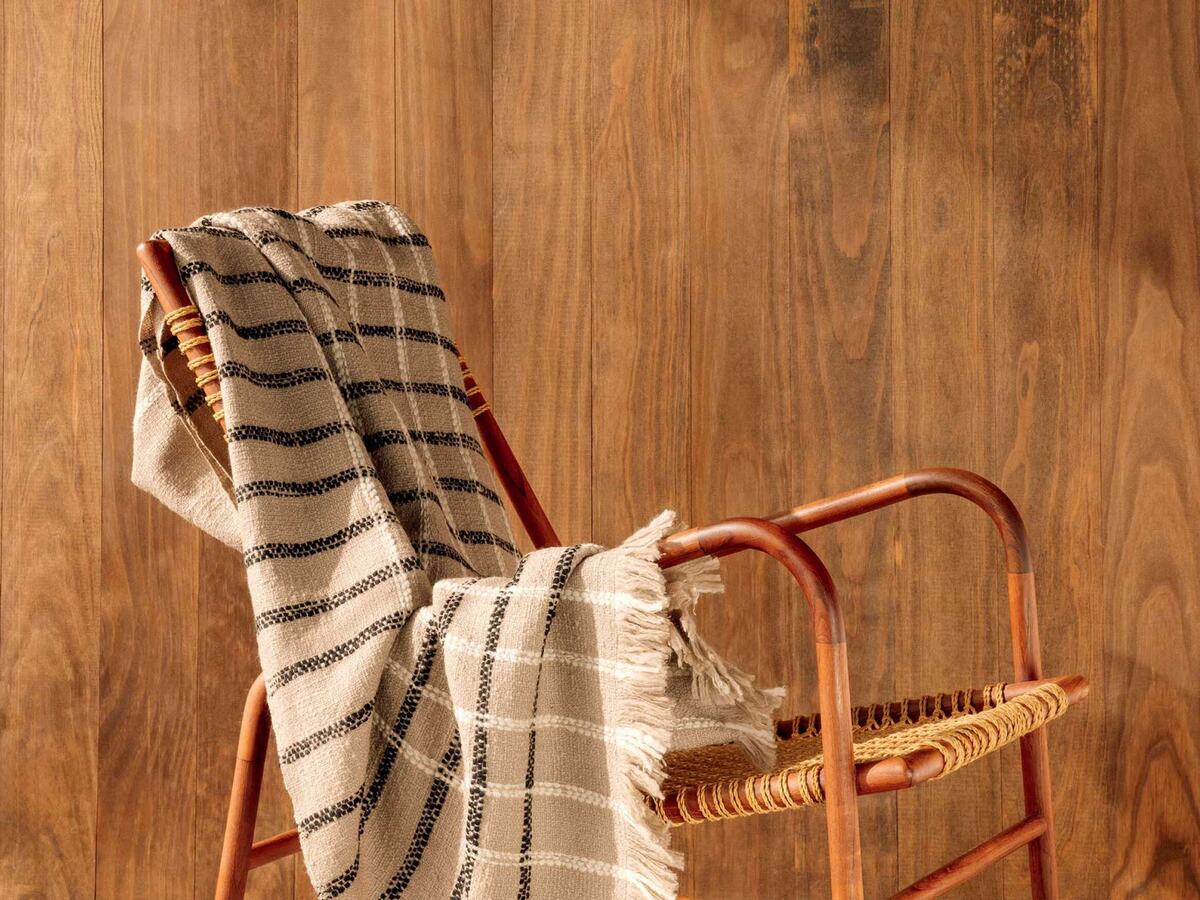 This check-patterned lap robe is made from 100% wool, providing warmth and comfort. Its timeless design is available in various color options to suit different interiors.