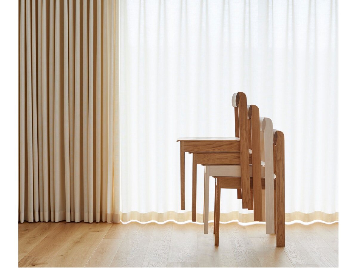 The Stackable Wooden Chair by Form & Refine is an archetypal piece made entirely of wood. Its uniquely shaped seat, inspired by human anatomy, promotes good posture and comfort. The solid, organically shaped backrest adds a minimalist and personal touch. Strong, solid legs combined with a veneer seat contribute to the chair’s surprising lightness and visual sharpness. The exquisite backrest is steam-bent and crafted from a single solid piece of wood.