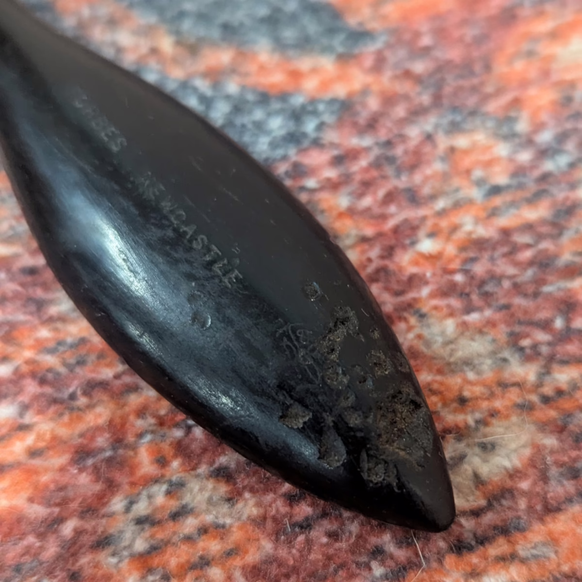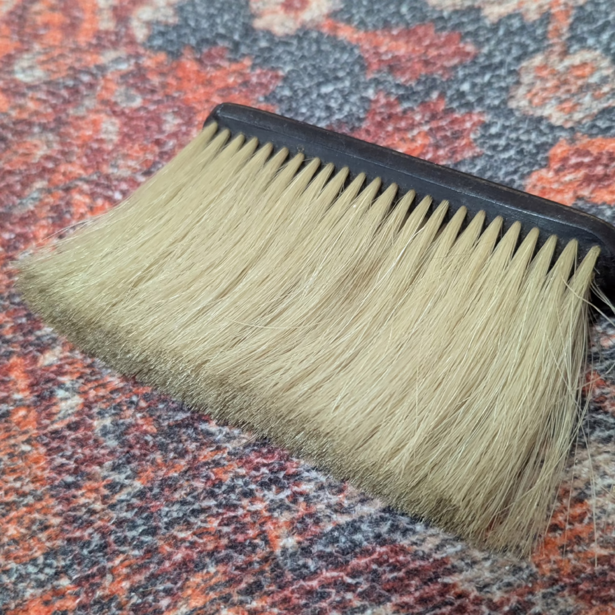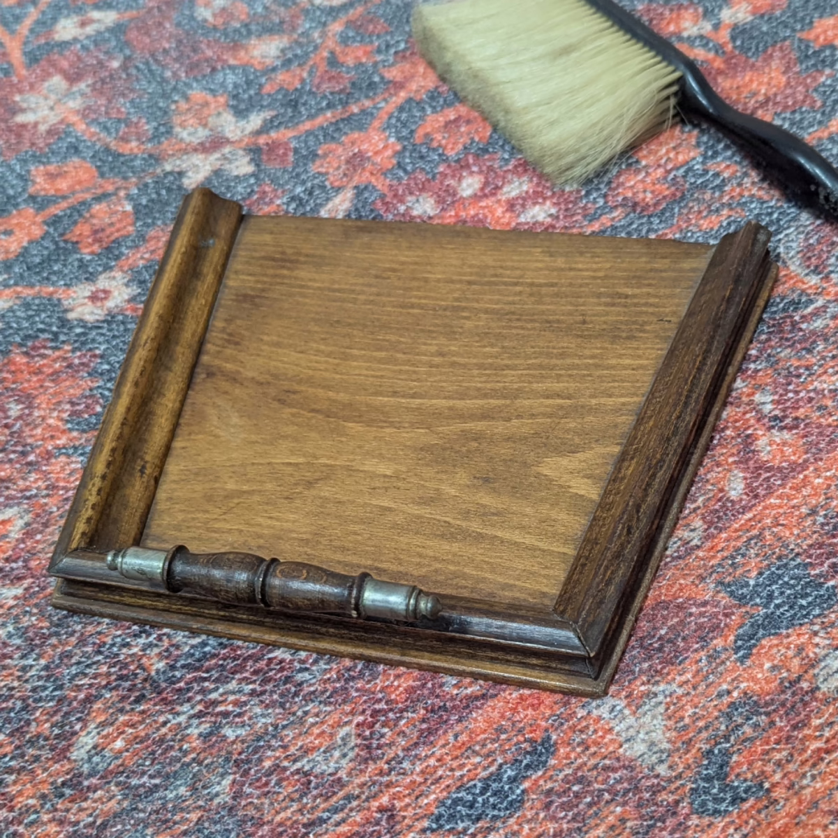 ‘Sold as seen’ in good, used condition. The brush maker’s mark in on the handle. There are some scuffs to the handle as shown. There is a discreet repair to the pan which can be seen on the back but not the front. Please browse our photos for an accurate sense of colour and condition.