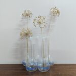A pair of ex-school, science lab, conical glass flasks, ready for a more sedate, domestic life as quirky vases perhaps. Their graduated height – one is 300ml, the other 200ml – makes them a breeze to style on a shelf, mantelpiece or sideboard.