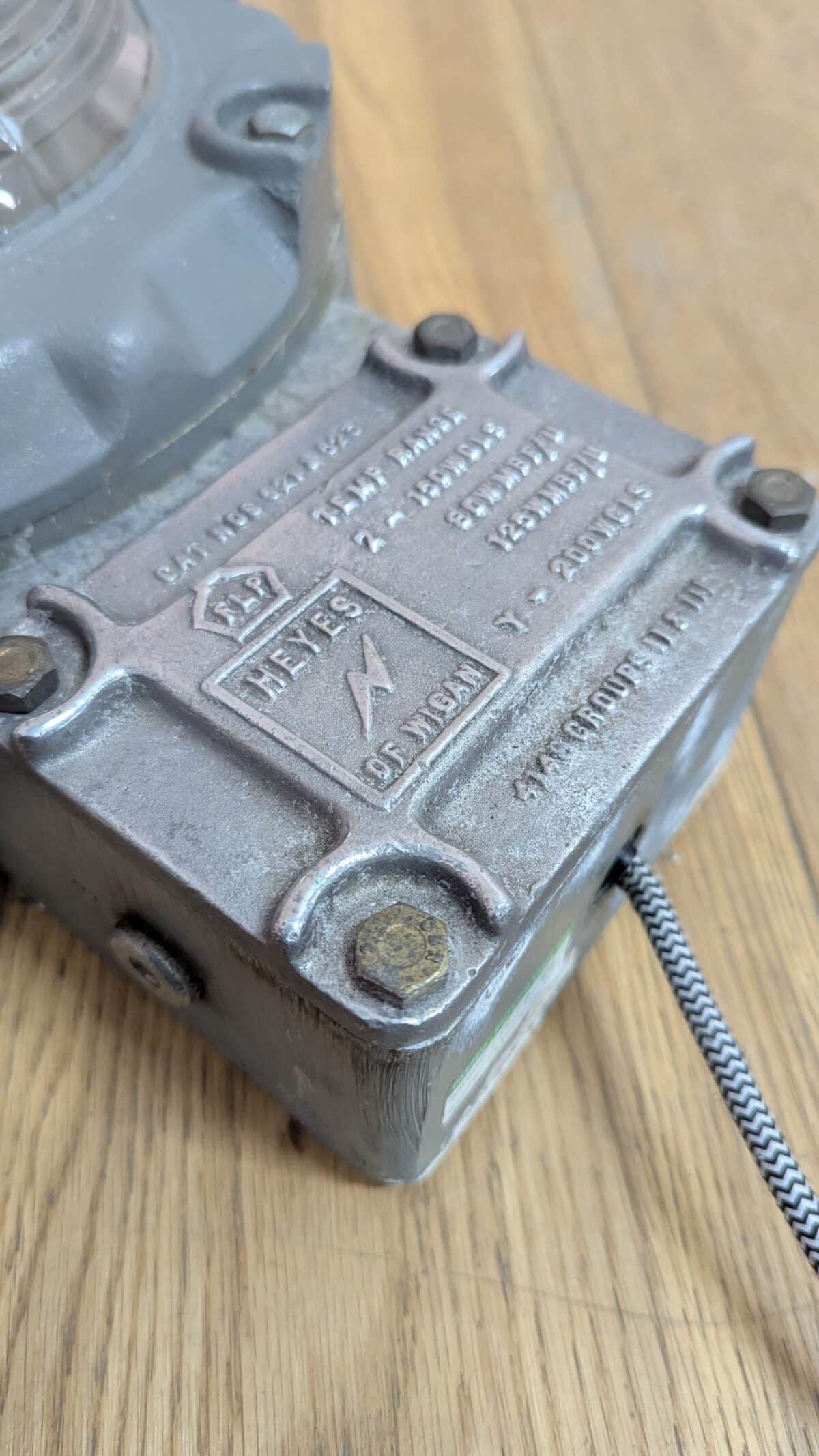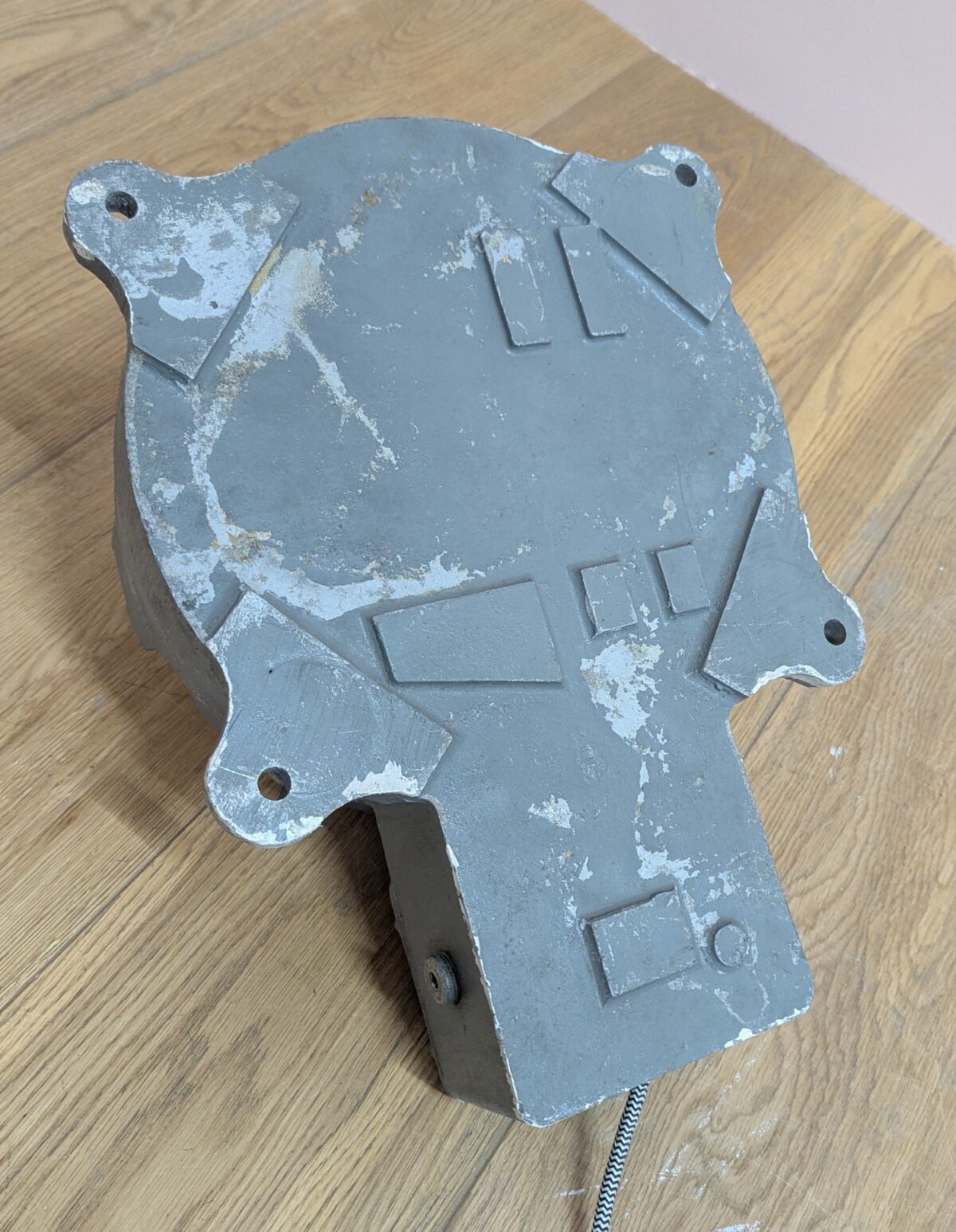 ‘Sold as seen’ in good, used condition. It has been checked, cleaned, rewired with fabric-coated flex and PAT tested. There is an aged patina to the paint on the casing as seen across our photos. Please browse our photos for an accurate sense of colour and condition.