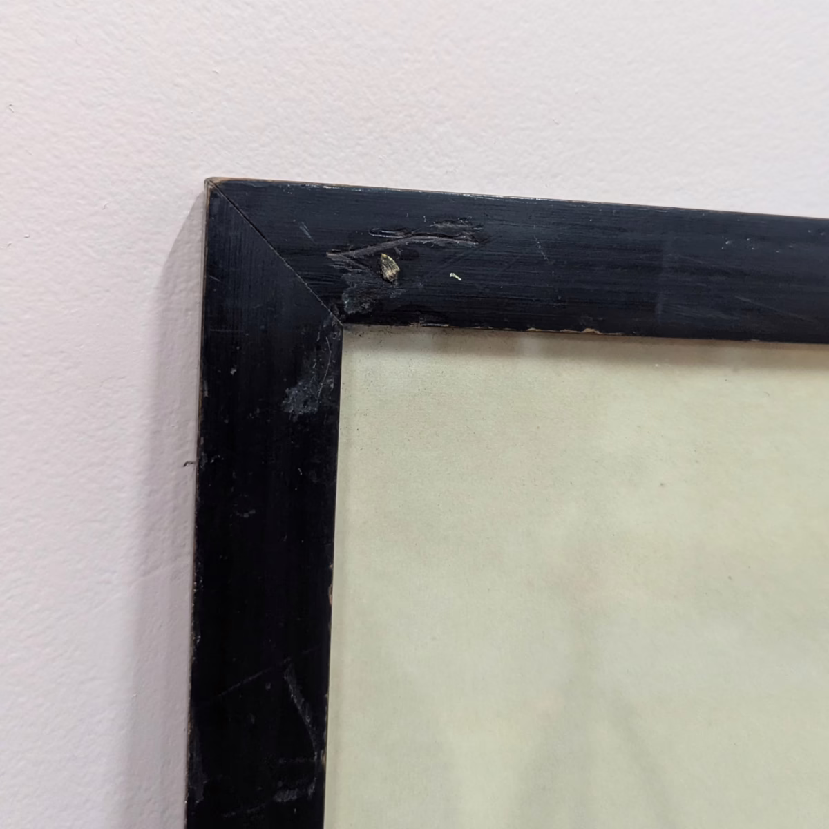 ‘Sold as seen’ in fair-good, used condition. The frame is a little scuffed here and there, as shown. The print board is also a little sunlight faded, also shown. Otherwise it is ready to hang. Please browse our photos for an accurate sense of colour and condition.